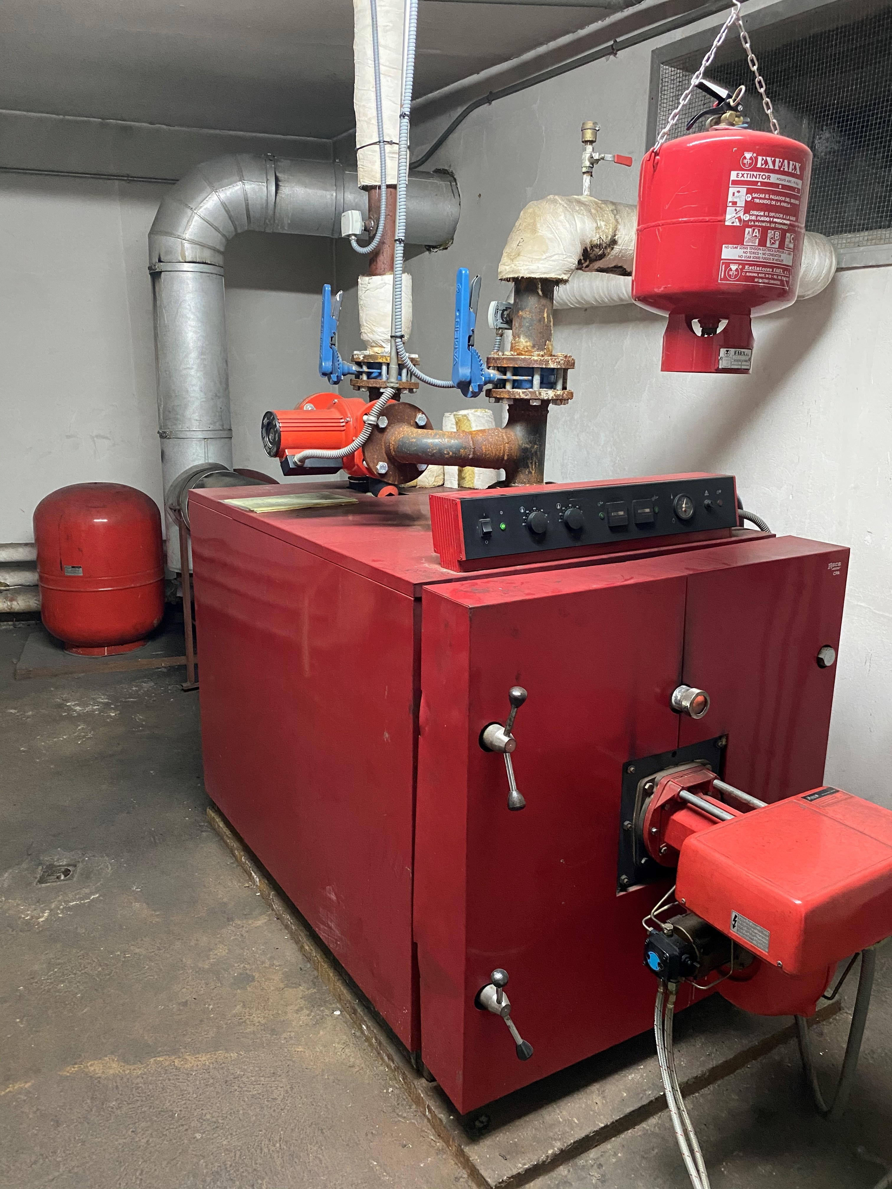 El sistema de caldera de gasoil actual data de 1984, y está siendo sustituido estos días por otro de gas natural, lo que supondrá un importante ahorro económico y una considerable reducción de emisión a la atmósfera de gases contaminantes