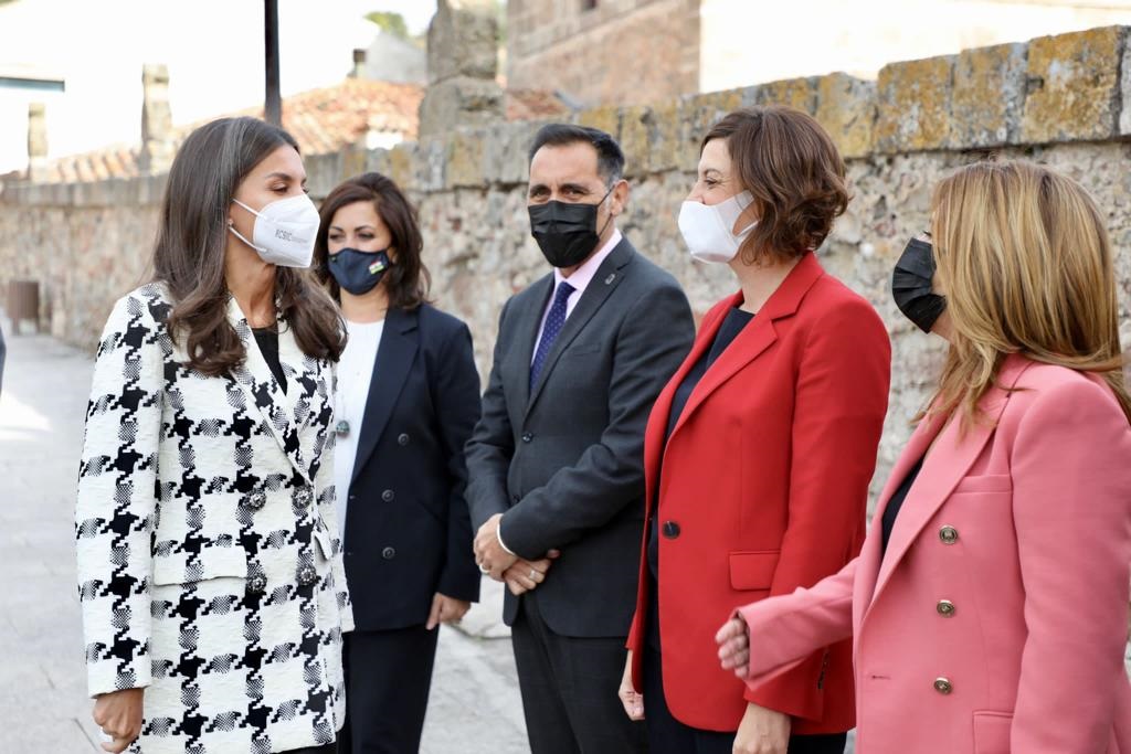 En la jornada de hoy, S.M. la reina Letizia ha estado acompañada por la presidenta del Gobierno y presidenta de la Fundación San Millán de la Cogolla, Concha Andreu; el presidente del Parlamento, Jesús María García; la delegada de Gobierno, María Marrodán; el consejero de Educación, Cultura, Juventud y Deporte, Pedro Uruñuela; el presidente de la FundéuRAE y director de la RAE, Santiago Machado; así como de la vicepresidenta de FundéuRAE y presidenta de la Agencia EFE, Gabriela Cañas.