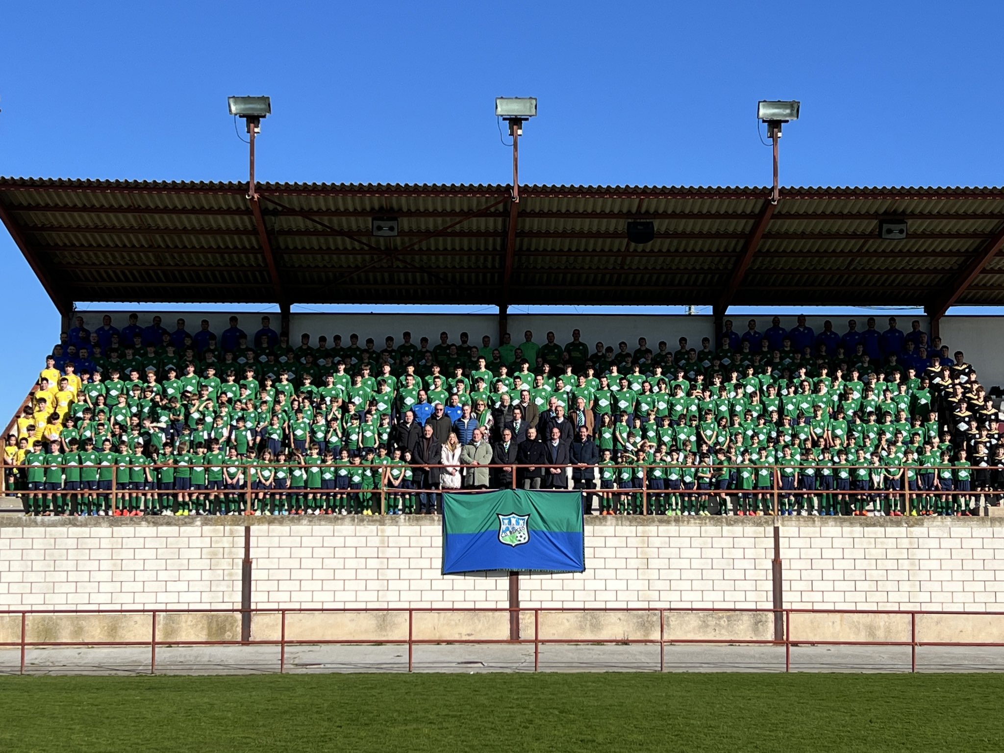 La presidenta del Parlamento de La Rioja, Marta Fernández Cornago, participó ayer en la realización de la tradicional foto que cada año organiza el Club Deportivo Berceo con todos los equipos que conforman la entidad.